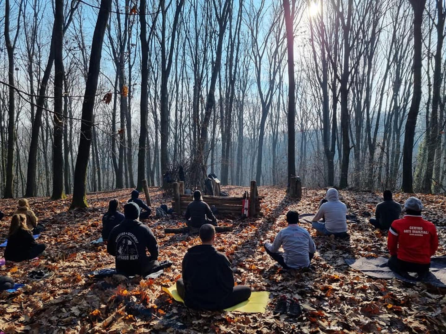 L’incontro, organizzato da Paolo, prevedeva un allenamento mattutino (d’inverno), nel bosco, con un uomo che incarna pienamente l’essenza del guerriero sia per forza e valore che per spirito: Davide Morini.