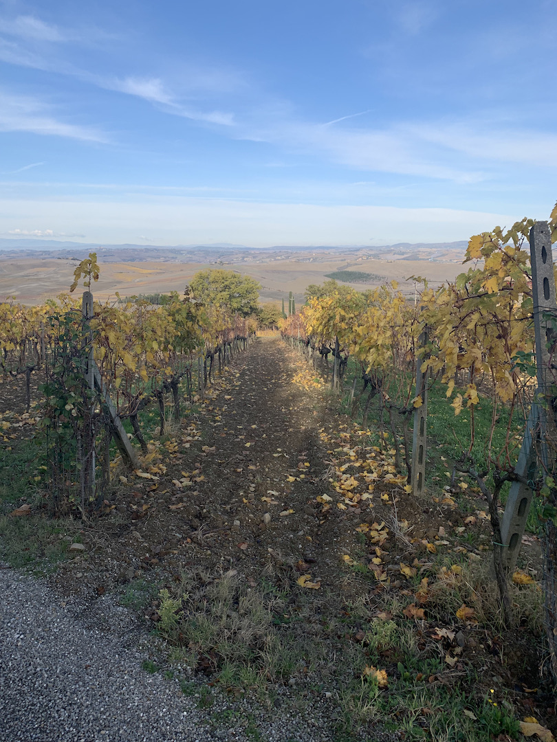 Deciso quindi di ‘dovere’ conoscere i miei benefattori, arrivo in cantina in una fredda giornata pre-invernale di novembre, appena qualche settimana dopo avere assaggiato (con favorevole piacere) le anteprime del Brunello 2017. Un momento perfetto. A Montalcino, dove ho dormito stanotte, fa quel freddo che è impossibile spiegare a chi abita le pianure. Ogni raffica di vento è una coltellata raffinata, che penetra cappotto e vestiti implacabilmente, ma è anche una clamorosa iniezione di endorfine, che porta a muoversi in maniera rapida, economizzando al massimo le esposizioni; gente come me, poi, che per deformazione professionale pensa sempre al clima come una funzione di un equilibrio destinato innanzitutto a salvaguardare le vigne, vista l’aria intirizzente della mattina, associata alla relativa temperanza della serate, soffre volentieri in silenzio perché nel frattempo si compia indisturbato il Miracolo della Creazione.
