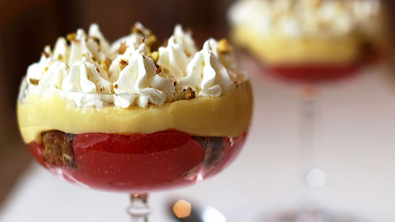 Ma, tornando ai nostri sovrani, pare che abbiano optato per questa ricetta dopo aver consultato lo chef reale Mark Flanagan, che ha completato il coronation menù con un urbanissimo carré di agnello arrosto marinato all’uopo in stile asiatico realizzato dallo chef cinese Ken Hom, e di un piatto a base di melanzane (le Coronation aubergine), salsa allo yogurt, chutney e cipolle fritte creato dall’ex vincitrice di “The Great British Bake Off”, Nadiya Hussain. Quanto al dessert, è stato affidato alle cure dello chef Adam Handling che ha realizzato un “trifle“, ovvero una personale interpretazione della classica zuppa inglese, qui realizzata con Yorkshire Parkin, crema pasticcera allo zenzero, fragole scozzesi e fiocchi di panna montata.
