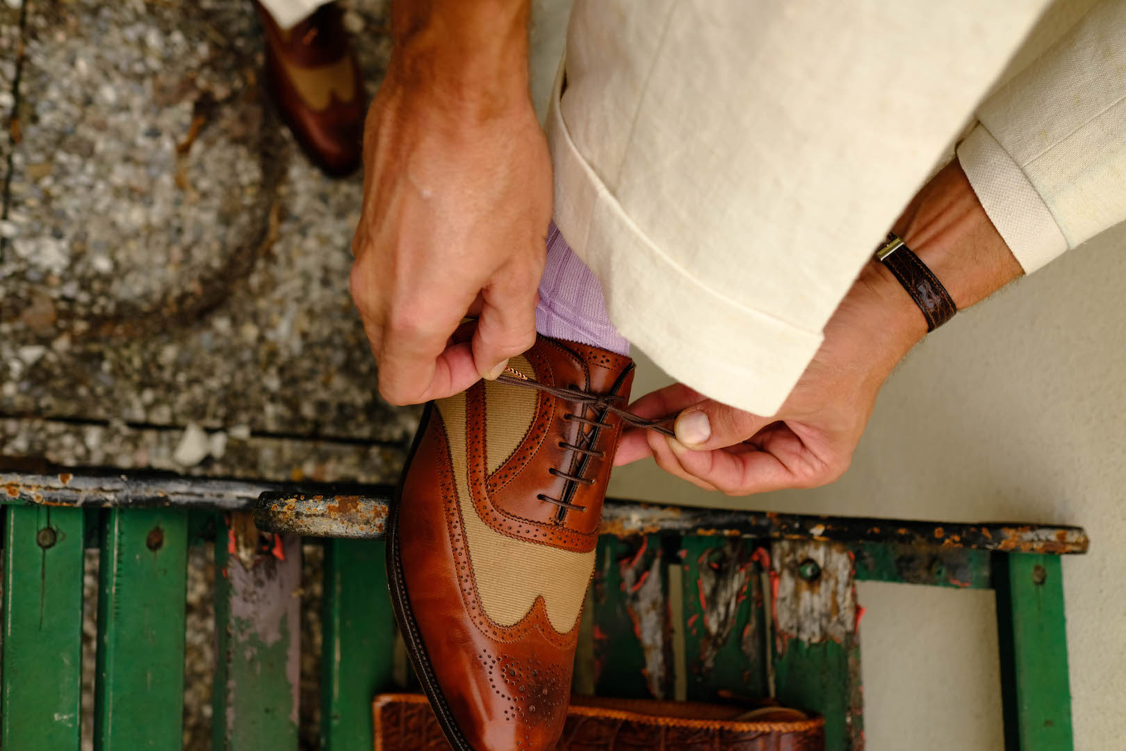 Mi chiamo Alexander Nurulaeff. Sono nato in una città siberiana del CCCP in 1972. Fin dal bambino ero allergico alle regole di uguaglianza imposte dal regime comunista sovietico. Non mi piaceva minimamente l’idea di comportarmi e vestirmi come tutti gli altri. Già in asilo nido ho rifiutato di indossare la canottiera bianca sotto la camicia, come era prescritto dalle regole. Più avanti a scuola modificavo la mia uniforme scolastica per renderla più “sartoriale” e unica, naturalmente prendendo tutte le conseguenze punitive dalla parte delle autorità scolastiche. Avevo sempre una grande curiosità e voglia di imparare a fare vari lavori manuali, creare cose che nessun altro poteva avere. Periodicamente cominciavo frequentare la scuola d’arte, ma ero sempre espulso per la scarsa disciplina e spirito anarchico e per i miei tentativi di dipingere le cose come le vedevo io, e non come mi insegnavano di fare. Quindi ho continuato i miei studi e ricerche per conto mio. Imparavo molto meglio sperimentando e praticando varie tecniche e diversi materiali. All’età di 20 anni sapevo fare pittore, falegname, meccanico, tatuatore e tante altre cose. Se mi serviva qualcosa- imparavo come e poi lo facevo per me. Con la mia grande manualità e capacità di imparare in fretta vari mestieri mi occupavo sempre delle cose che mi piacevano e che mi interessavano. Cercavo sempre di imparare i nuovi modi di esprimere la mia creatività e nuove tecniche che mi permettevano di realizzare qualsiasi cosa che mi piaceva di avere. Volevo una cravatta e un gilet dipinti a mano… Dopo pochi mesi aprivo già il mio piccolo atelier dove facevo vestiti, cravatte e foulard dipinti a mano sulla seta bianca. Una volta ho visto in museo il quadro di Picasso “Ragazzo con cane”. Dopo qualche settimana, utilizzando tutti gli scarsi materiali e colori che sono riuscito a trovare in giro, ho fatto una copia in grandezza naturale di questo quadro… Dopo il crollo di CCCP ho deciso approfittare della possibilità di poter viaggiare fuori dalla Russia. Da bambino volevo andare a vivere in un posto dove non dovevo soffrire il lungo inverno con la temperatura media di -30 gradi , forti venti ghiacciati e assoluta mancanza della luce del sole. E così è stato. Mi sono trasferito in Italia. Una ondata di novità di ogni genere mi ha aiutato di allargare ancora di più le mie capacità artistiche. Continuavo come sempre a dipingere passando da pittura astratta e innovativa (che non portava nessun beneficio economico) a ritratti super realistici e commoventi, grazie ai quali un pittore bravo riesce sempre a procurarsi il pane. Numerosi incontri con i critici d’arte e altre persone assolutamente prive di qualsiasi capacità creativa mi costringevano ad andare verso un tipo d’arte dove io non dovevo più dipendere dalle loro parole. Cercavo qualcosa che mi permetteva di avere un rapporto diretto con il mio pubblico. Così mi è venuta idea di creare scarpe dipinte a mano. In questo modo le mie Opere d’Arte dopo potevano andare “in giro” per tutto il mondo. In pochi anni sono diventato uno tra i migliori artisti specializzati nella colorazione delle scarpe e accessori in pelle naturale. Nel frattempo, ho imparato anche il mestiere del calzolaio (naturalmente perché volevo avere scarpe che nessun altro aveva). Ho collaborato con tantissimi famosi produttori di calzature di lusso per creare prototipi delle scarpe dipinte a mano, o per fare delle Serie Limitate. Sono sempre stato molto attento ad ogni piccolo particolare. Cerco sempre di migliorare la qualità delle mie Patina (colorazione artistica delle calzature). Anni fa ho avuto una geniale idea di creare un paio di scarpe classiche da uomo, ma con una colorazione Camouflage. È stato un enorme successo. Ma come tante mie idee geniali anche questa è stata subito copiata dalle grande industrie della moda… Nonostante questo ancora oggi continuo a ricevere tante richieste per la realizzazione della mia famosa Patina Camouflage. Appena ho un attimo mi dedico a numerosi vizi e piaceri accumulati durante la vita, di quali sicuramente vi parlerò in articoli successivi. Perché la vita va gustata e assaporata giorno dopo giorno. Cercando di eliminare tutto ciò che è negativo e brutto. Coltivando Amore, Bellezza e Armonia.