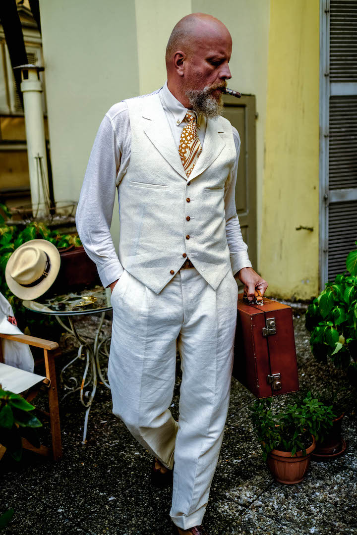 Inizialmente ero  convinto di dovermi procurare un pezzo di lino: il classico intramontabile per ogni gentiluomo. Ma dopo avere visto la Grande Bellezza dell’antico manufatto in canapa non avevo più i dubbi. Comprai il rullo pesante di canapa dal felice venditore ad un prezzo veramente simbolico, di appena 20€ (!), e andai direttamente dal sarto.