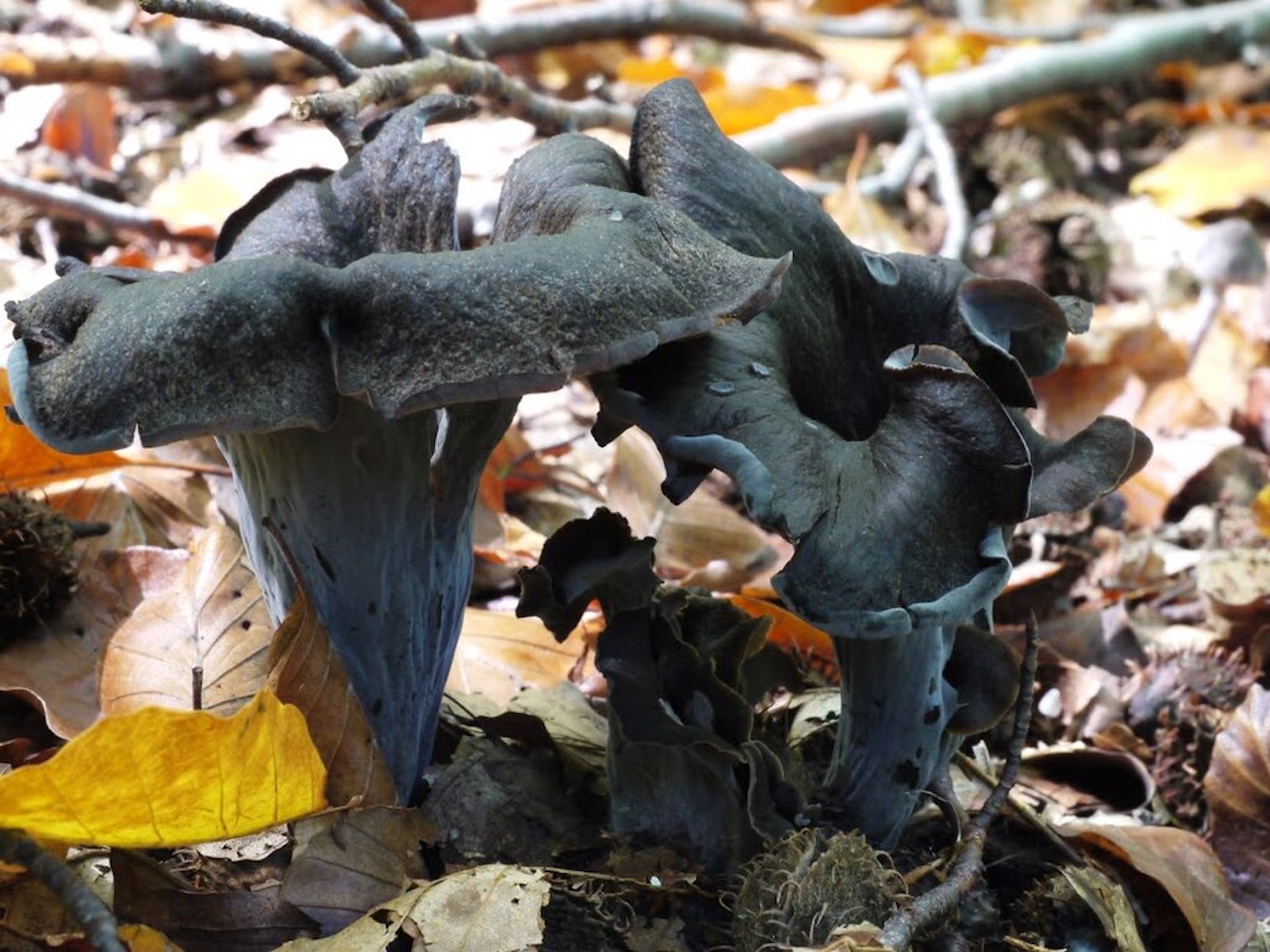 Le Trombette dei morti sono simili ai finferli, ma con cappello e gambo cavo, definiti da un caratteristico sentore di tartufo, tant’è che essiccati e polverizzati sono utilizzati per aromatizzare primi e secondi piatti. Richiedono circa 20 minuti di cottura per ammorbidirne la consistenza tenace, vorrei dire, piacevolmente tenace.
